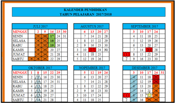 KALENDER PENDIDIKAN TAHUN PELAJARAN 2017 2018 TERBARU YANG AKAN BERLAKU